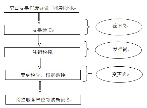 (1)稅控服務單位處領取升級流轉單,根據流轉單并到相應窗口辦理發票繳銷驗舊。